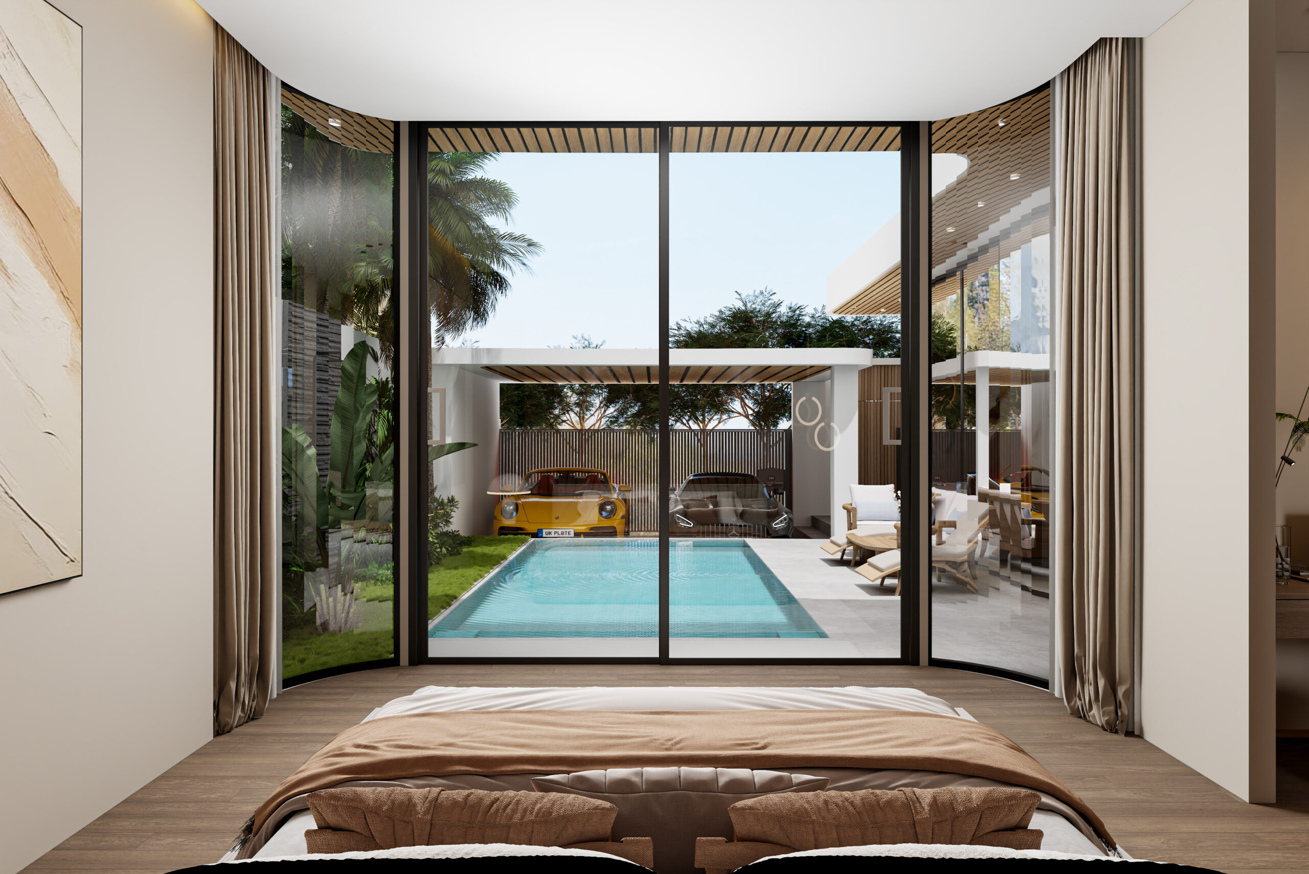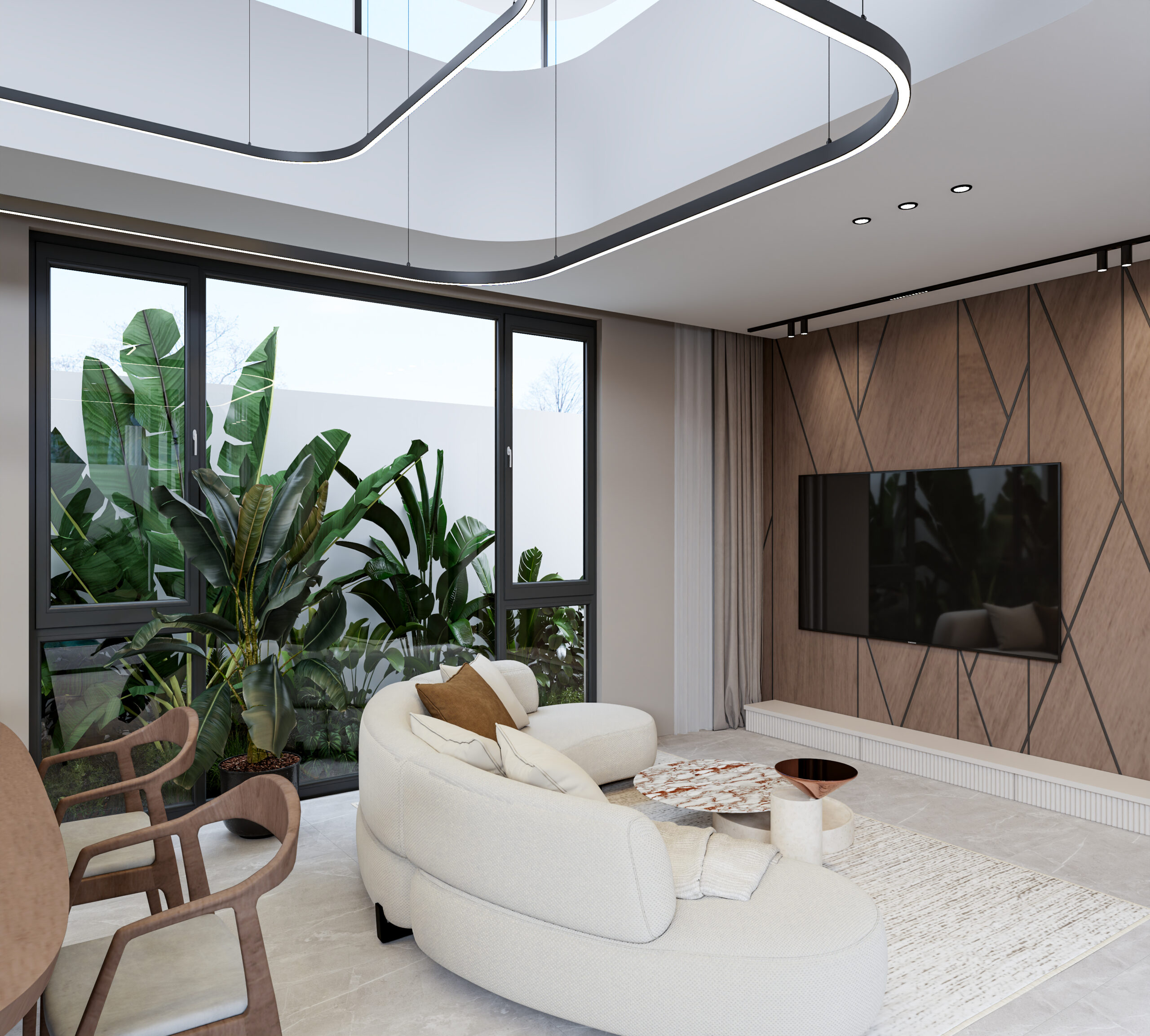 Простор и свет: Панорамные окна с видом на тропическую природу.