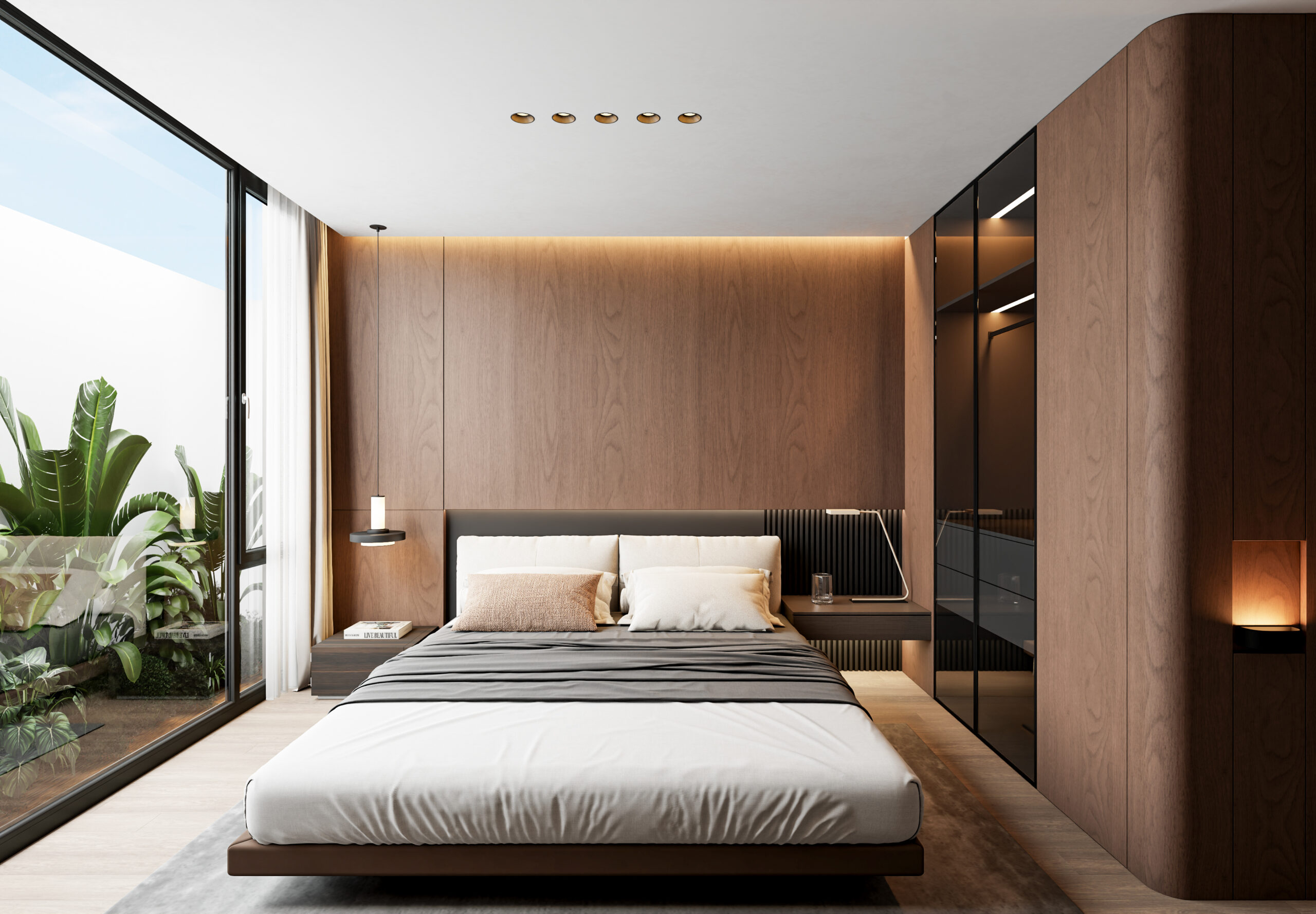-Панорамные окна и стильные светильники подчеркивают современный и уютный стиль